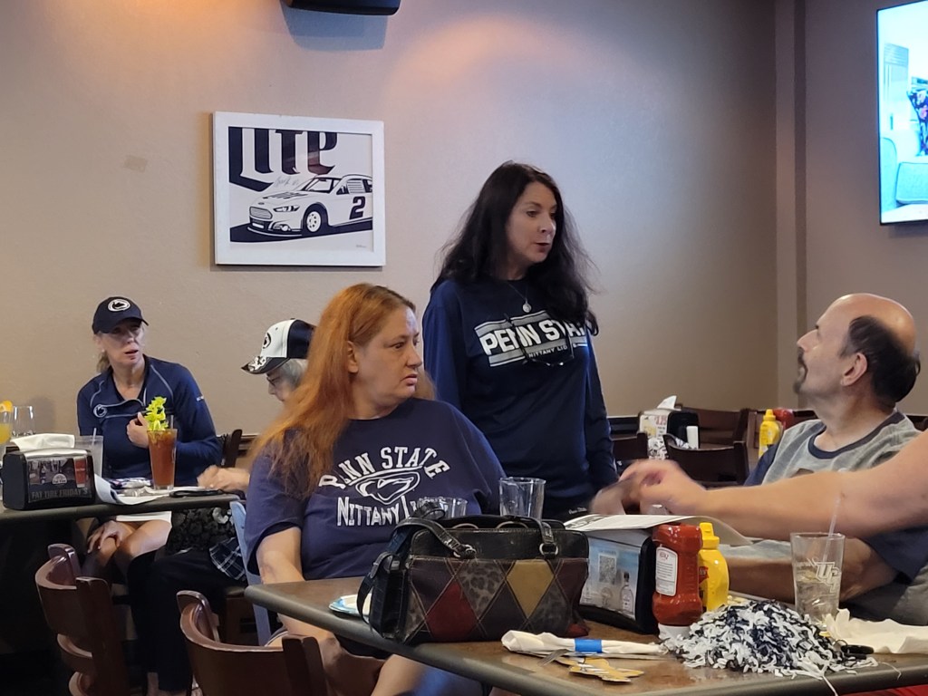 We had quite a range of attendees, from alumni, partners, children, and parents, all rooting for Penn State (this isn’t a requirement, we love a little friendly bantering with the adversaries during the game.) The Baranski family Penn State legacy has Ed graduating in 1955 and his son Ed graduating in 1988. We had graduates from 1955, 1964, 1971, 1978, 1979, 1982, 1986, 1982, 1988, 1990, 1992, 2005, and 2011.