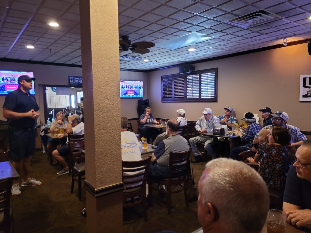 It was so great to see everyone at the first game of the 2021 season against Wisconsin. And what a game! We had quite a crowd at our traditional spot, The Oyster Pub in Daytona Beach. VP John Wilson played the lion roar when appropriate and his son Austin did the push-ups. We plan to be at the Oyster Pub for every game so check our Facebook page for the schedule and join our Facebook group to join in the conversation.