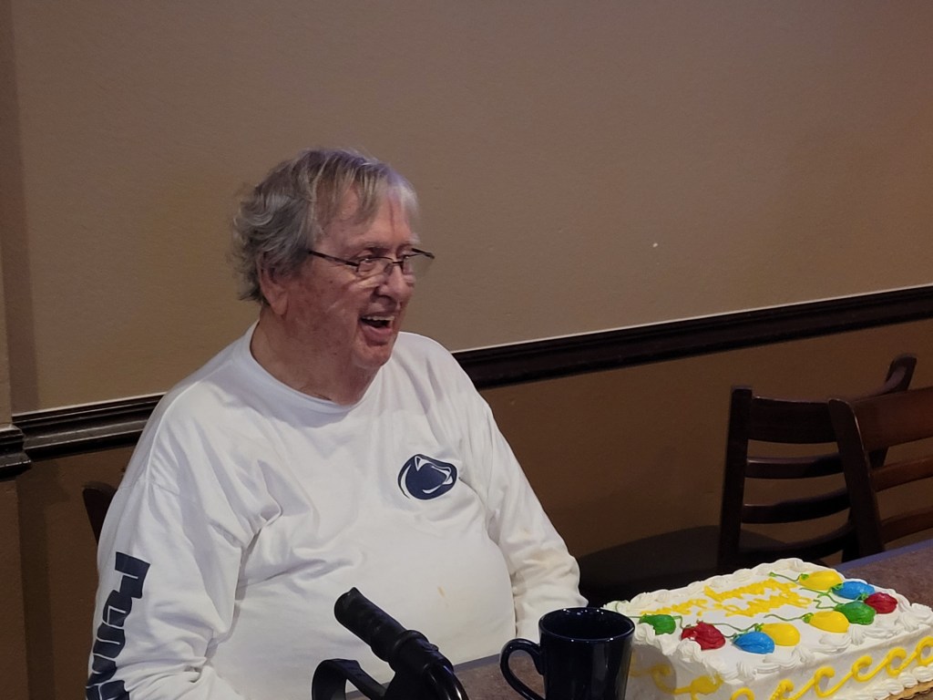 We were so happy to celebrate the 90th birthday of our eldest member, John, whose daughter is a Penn State grad. What a great gift of a win!